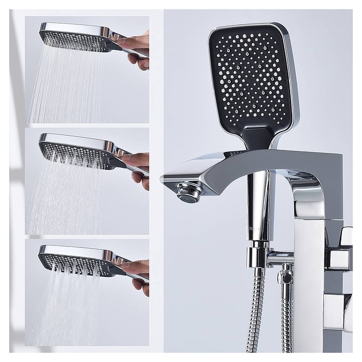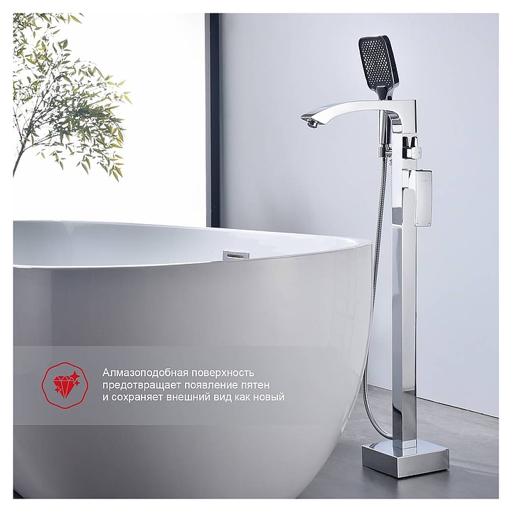 Напольный смеситель Raglo R01.33 предназначен для подачи горячей и холодной воды в ванных помещениях. Однорычажный тип управления позволяет быстро и плавно регулировать подачу воды одной рукой. Модель оснащена керамическим картриджем, обеспечивающим плавный ход рычага смесителя, контроль и точность при выборе напора и температуры воды. Аэратор излива создает мягкую струю без брызг. Изделие выполнено из латуни, отличающейся прочностью, долговечностью и устойчивостью к перепадам температур, шланг - из металла, аэратор - из силикона. В комплект поставки входят смеситель, душевая лейка и шланг. Особенности:
