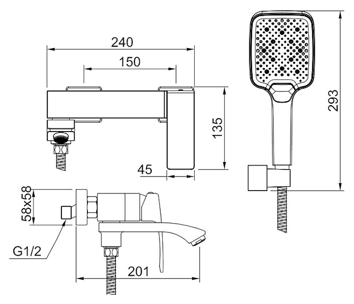 Смеситель для ванны с душем Raglo R01.30.03 предназначен для подачи горячей и холодной воды в ванных помещениях. Однорычажный тип управления позволяет быстро и плавно регулировать подачу воды одной рукой. Модель оснащена керамическим картриджем, обеспечивающим плавный ход рычага смесителя, контроль и точность при выборе напора и температуры воды. Аэратор излива создает мягкую струю без брызг. Изделие выполнено из латуни, отличающейся прочностью, долговечностью и устойчивостью к перепадам температур, шланг - из металла. В комплект поставки входят смеситель, шланг, душевая лейка, держатель душевой лейки, эксцентрики и отражатели. Особенности: