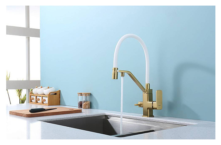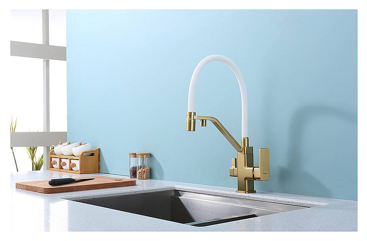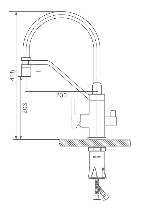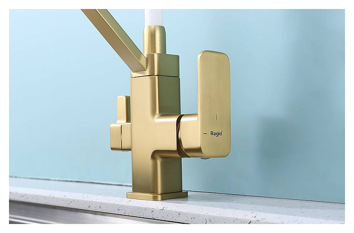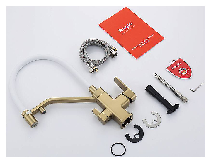 Смеситель Raglo R85.62.03 предназначен для подачи горячей и холодной воды в кухонных помещениях. Модель оснащена гибким изливом, подключением к фильтру с питьевой водой и керамическим картриджем, который обеспечивает плавный ход рычага смесителя, контроль и точность при выборе напора и температуры воды. Аэратор создает мягкую струю без брызг. Изделие выполнено из высококачественной латуни, отличающейся прочностью, долговечностью и устойчивостью к перепадам температур. В комплект поставки входят смеситель, гибкая подводка и крепления. Дополнительные характеристики: