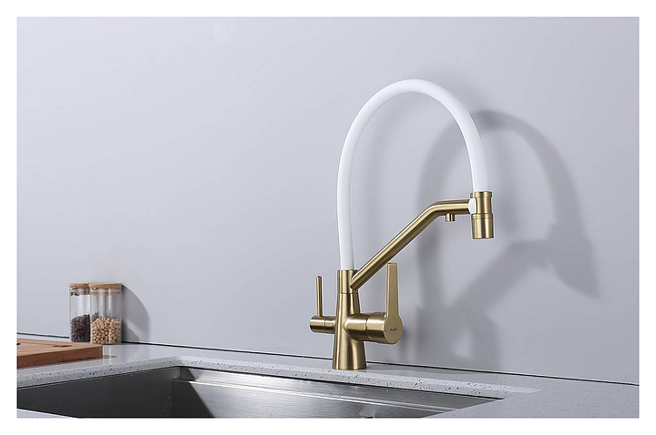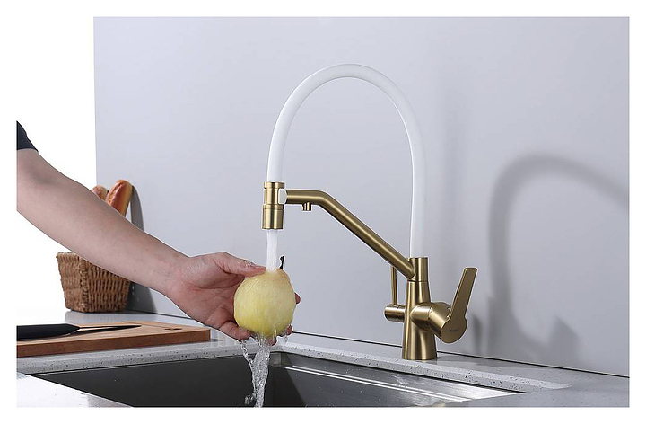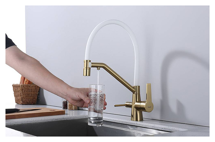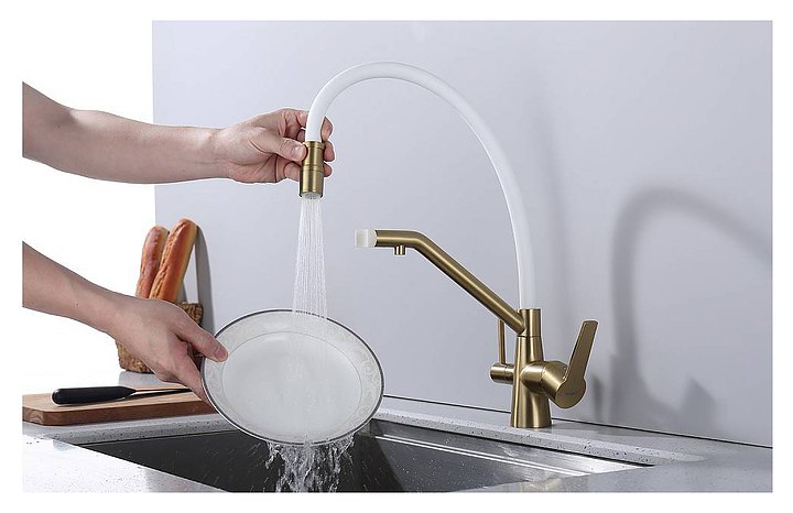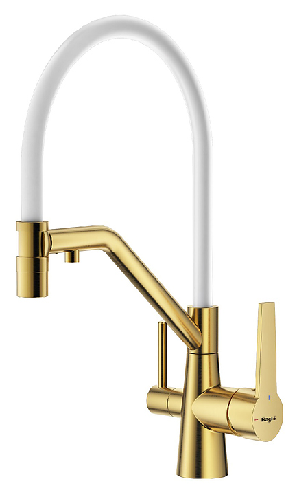 Смеситель Raglo R80.62.03 предназначен для подачи горячей и холодной воды в кухонных помещениях. Модель оснащена съемным гибким изливом на магните, подключением к фильтру с питьевой водой и керамическим картриджем, который обеспечивает плавный ход рычага смесителя, контроль и точность при выборе напора и температуры воды. Аэратор создает мягкую струю без брызг. Изделие выполнено из высококачественной латуни, отличающейся прочностью, долговечностью и устойчивостью к перепадам температур. В комплект поставки входят смеситель, гибкая подводка и крепления. Дополнительные характеристики: