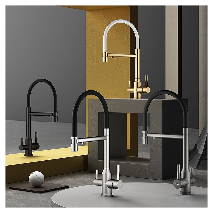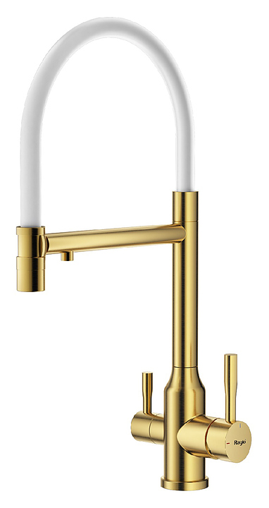 Смеситель Raglo R81.63.03 предназначен для подачи горячей и холодной воды в кухонных помещениях. Модель оснащена креплением на усиленной гайке, съемным гибким изливом на магните, подключением к фильтру с питьевой водой и керамическим картриджем, который обеспечивает плавный ход рычага смесителя, контроль и точность при выборе напора и температуры воды. Аэратор создает мягкую струю без брызг. Корпус выполнен из высококачественной нержавеющей стали, отличающейся прочностью, долговечностью и устойчивостью к коррозии. В комплект поставки входят смеситель, гибкая подводка и крепления. Дополнительные характеристики: