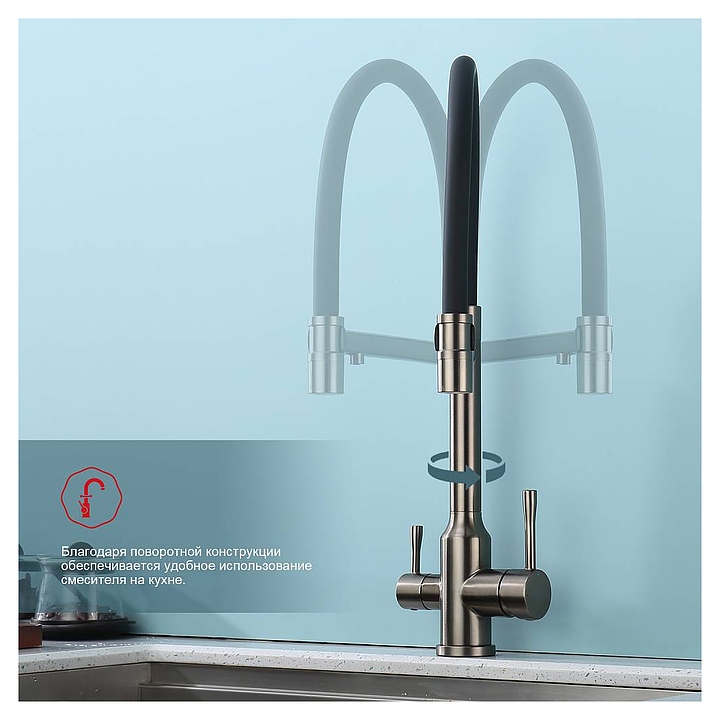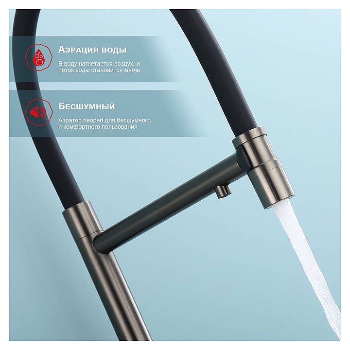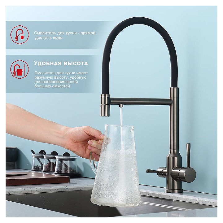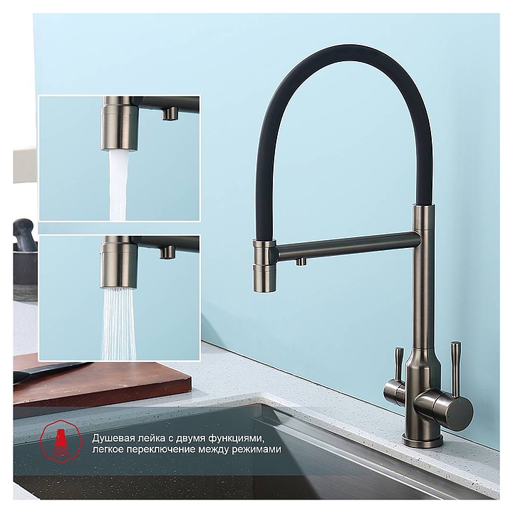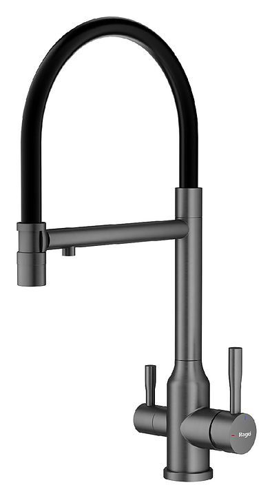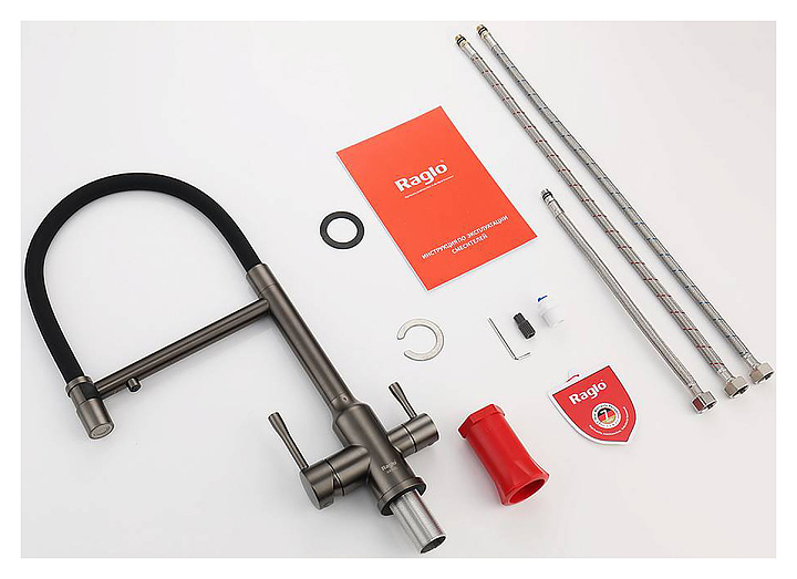 Смеситель Raglo R81.63.09 предназначен для подачи горячей и холодной воды в кухонных помещениях. Модель оснащена креплением на усиленной гайке, съемным гибким изливом на магните, подключением к фильтру с питьевой водой и керамическим картриджем, который обеспечивает плавный ход рычага смесителя, контроль и точность при выборе напора и температуры воды. Аэратор создает мягкую струю без брызг. Корпус выполнен из высококачественной нержавеющей стали, отличающейся прочностью, долговечностью и устойчивостью к коррозии. В комплект поставки входят смеситель, гибкая подводка и крепления. Дополнительные характеристики:
