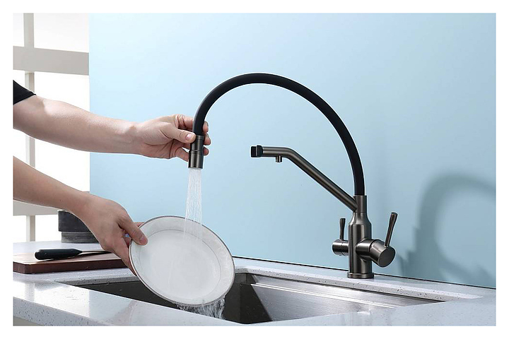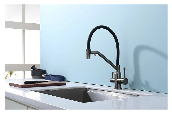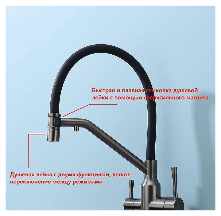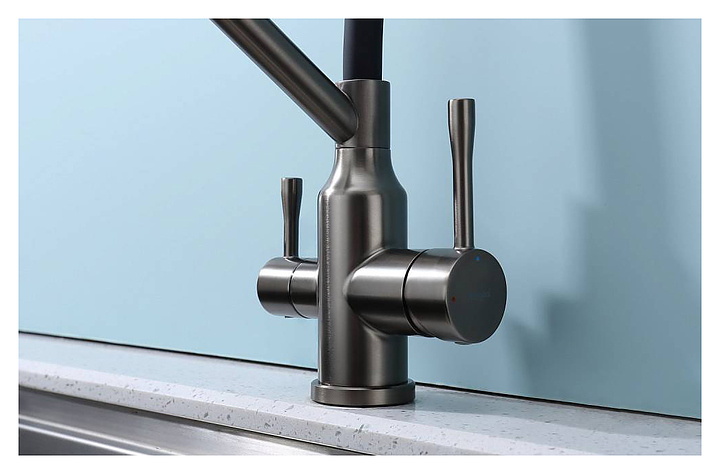 Смеситель Raglo R81.62.093 предназначен для подачи горячей и холодной воды в кухонных помещениях. Модель оснащена креплением на усиленной гайке, съемным гибким изливом на магните, подключением к фильтру с питьевой водой и керамическим картриджем, который обеспечивает плавный ход рычага смесителя, контроль и точность при выборе напора и температуры воды. Аэратор создает мягкую струю без брызг. Корпус выполнен из высококачественной нержавеющей стали, отличающейся прочностью, долговечностью и устойчивостью к коррозии. В комплект поставки входят смеситель, гибкая подводка и крепления. Дополнительные характеристики: