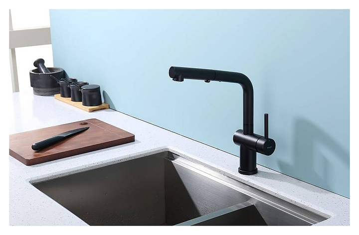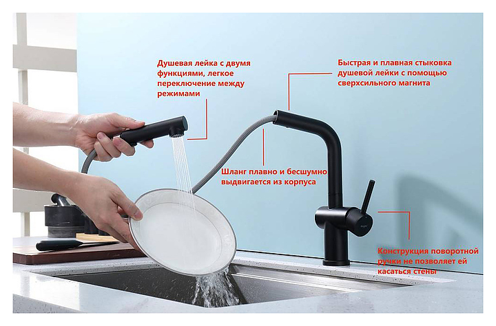 Смеситель Raglo R86.49.06 предназначен для подачи горячей и холодной воды в кухонных помещениях. Модель оснащена выдвижным изливом на магните, 2-режимной душевой лейкой и керамическим картриджем, который обеспечивает плавный ход рычага смесителя, контроль и точность при выборе напора и температуры воды. Встроенный аэратор фильтрует примеси и создает мягкую струю без брызг. Корпус выполнен из высококачественной нержавеющей стали, отличающейся прочностью, долговечностью и устойчивостью к коррозии. В комплект поставки входят смеситель, гибкая подводка и крепления. Дополнительные характеристики: