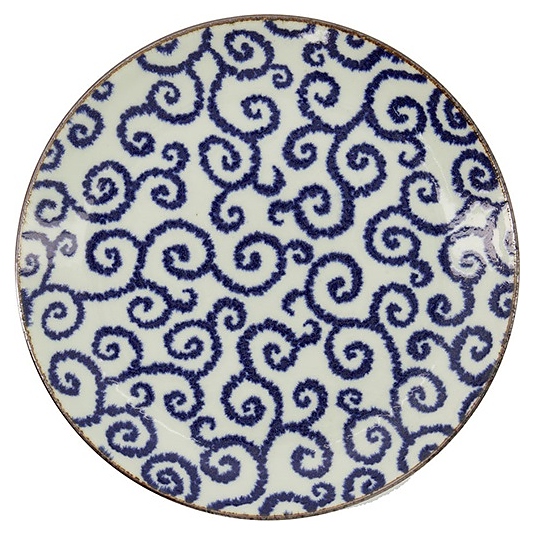 Тарелка Tokyo Design 18904 коллекции Karakusa используется в барах, ресторанах, на других предприятиях общественного питания и в домашних условиях для подачи различных блюд. Емкость круглого сечения оснащена плавно расширенным к кромке бортом. Изделие выполнено из высококачественного фарфора с декором поверхности арабесками с темно-синими завитками травяных стеблей на белом фоне и коричневым кантом на кромке. Цена указана за 1 шт. Особенности:
