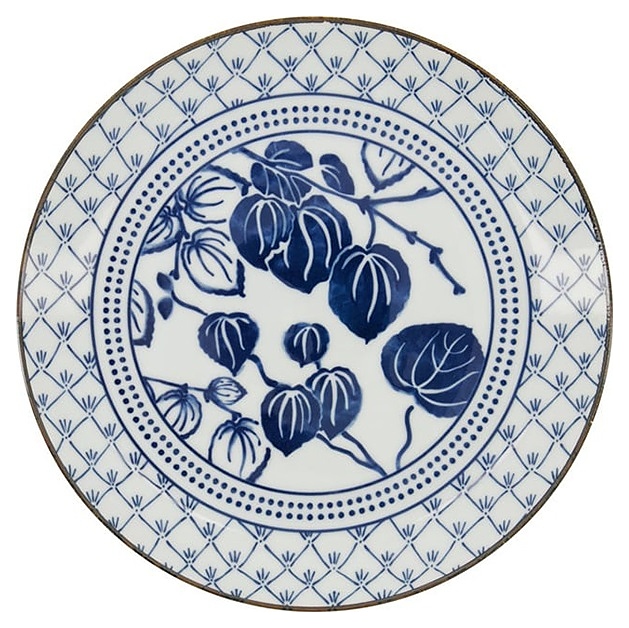 Тарелка Tokyo Design 16723 коллекции Flora Japonica используется в барах, ресторанах, на других предприятиях общественного питания и в домашних условиях для подачи различных блюд. Емкость круглого сечения оснащена плавно расширенным к кромке бортом. Изделие выполнено из высококачественного фарфора с белой поверхностью, декоративными паттернами со стеблями и листьями растений и в синих тонах и коричневым кантом на кромке. Цена указана за 1 шт. Особенности: