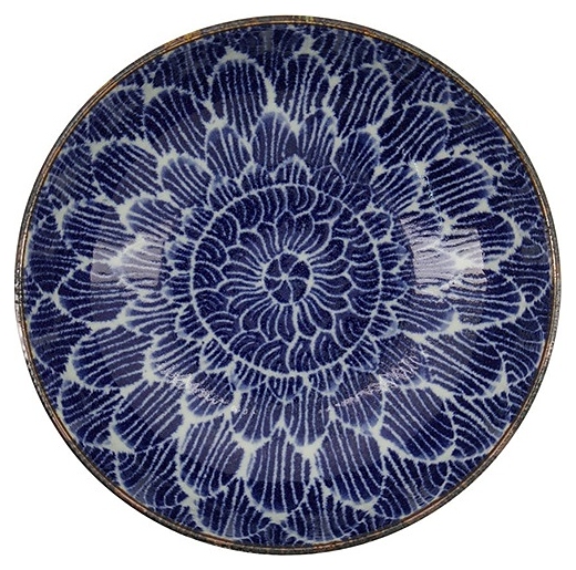 Салатник Tokyo Design 18891 коллекции Ohuke Dahlia используется в барах, ресторанах, на других предприятиях общественного питания и в домашних условиях для подачи салатов. Емкость круглого сечения оснащена плавно расширенным в основании бортом. Изделие выполнено из высококачественного фарфора с декором внутренней поверхности стилизованным под цветок георгина синим радиальным паттерном, внешняя сторона борта коричневого оттенка. Цена указана за 1 шт. Особенности: