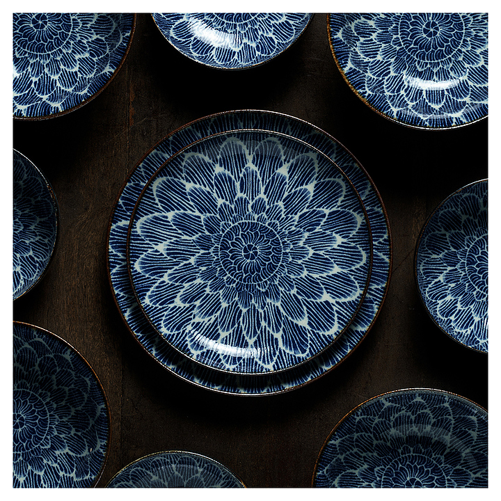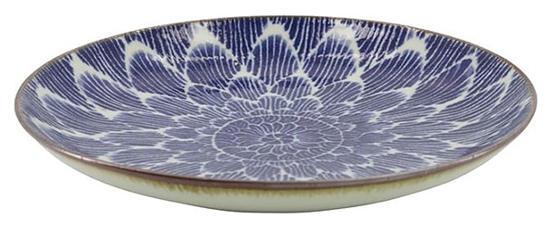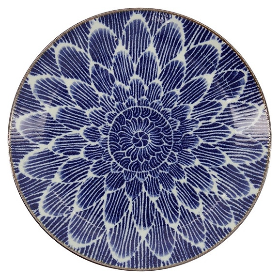 Тарелка Tokyo Design 18888 коллекции Ohuke Dahlia используется в барах, ресторанах, на других предприятиях общественного питания и в домашних условиях для подачи различных блюд. Емкость круглого сечения оснащена плавно расширенным к кромке бортом. Изделие выполнено из высококачественного фарфора с декором внутренней поверхности чаши стилизованным под цветок георгина синим радиальным паттерном и коричневым кантом на кромке. Цена указана за 1 шт. Особенности: