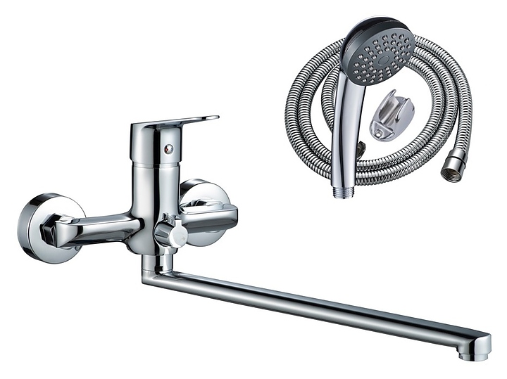 Смеситель для ванны и душа WesnaArt NOVA NOV03-320 предназначен для использования в ванных помещениях для подачи горячей и холодной воды. Модель оснащена округлым поворотным изливом с аэратором, душевым гарнитуром, включающим в себя однорежимную душевую лейку, крепление и душевой шланг. Керамический картридж обеспечивает плавный ход рычага смесителя, контроль и точность при выборе напора и температуры воды, а аэратор создает мягкую ровную струю без разбрызгивания. Изделие выполнено из высококачественной латуни, отличающейся прочностью, долговечностью и устойчивостью к перепадам температур. В комплект поставки входят смеситель, душевой шланг, душевая лейка, аэратор, держатель лейки, отражатели и эксцентрики. Особенности: