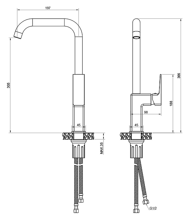Смеситель WesnaArt NARCIS NAR06-150BL-25432 предназначен для подачи горячей и холодной воды в кухонных помещениях. Модель оснащена высоким поворотным изливом, встроенным аэратором и керамическим картриджем, который обеспечивает плавный ход рычага смесителя, контроль и точность при выборе напора и температуры воды. Аэратор фильтрует примеси и создает мягкую струю без брызг. Корпус выполнен из высококачественной нержавеющей стали, отличающейся прочностью, долговечностью и устойчивостью к коррозии. В комплект поставки входят смеситель, гибкая подводка и крепления. Особенности: