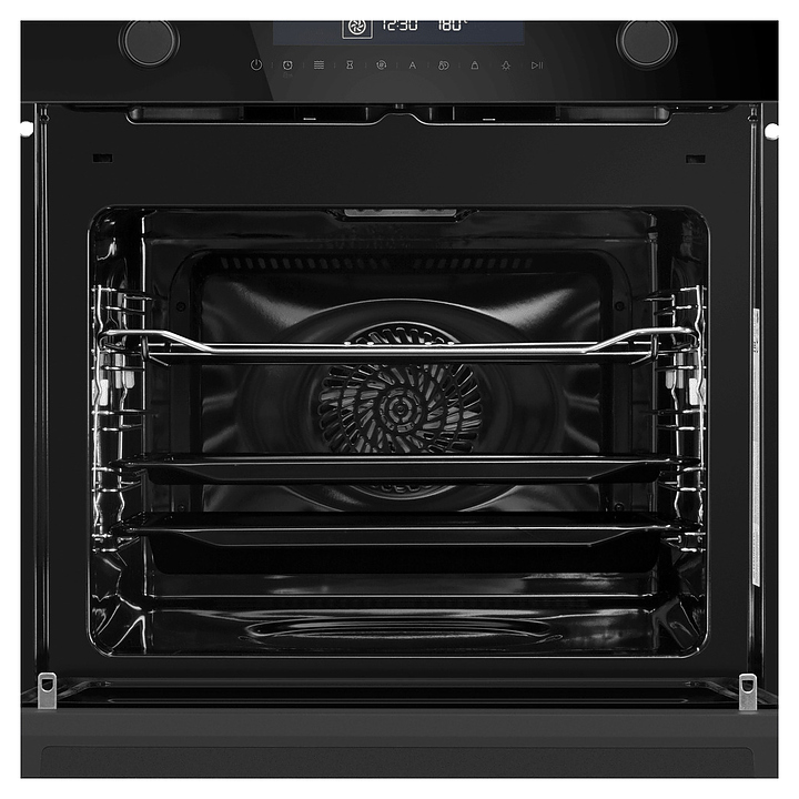 Турбоконвекция: нагрев заднего кольцевого нагревательного элемента с интенсивным обдувом для одновременного приготовления на нескольких уровнях без смешивания запахов