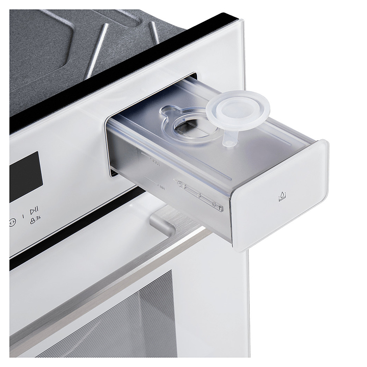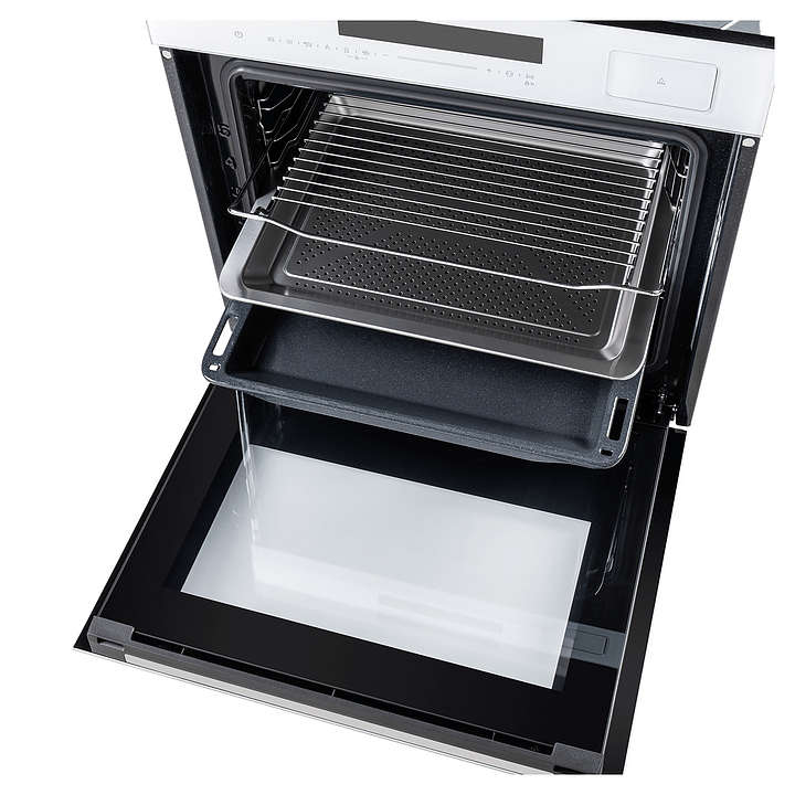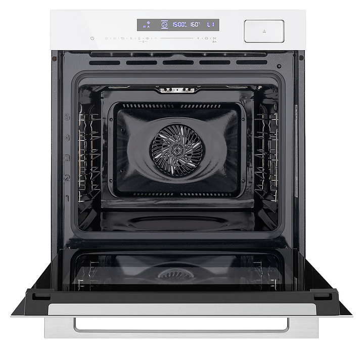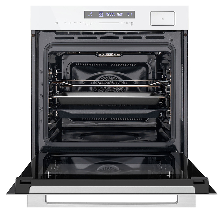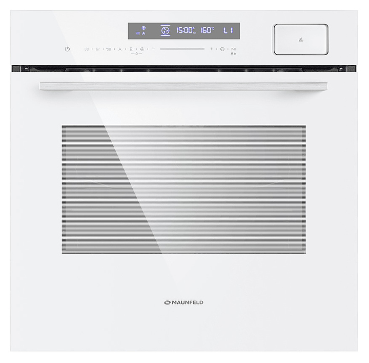 Встраивамый электрический духовой шкаф Maunfeld MEOR7216STW предназначен для приготовления большого ассортимента блюд в домашних условиях. Модель оснащена камерой с расположенными в задней стенке кольцевым нагревательным элементом и вентилятором, парогенератором, верхним и нижним нагревательными элементами, верхним грилем, 2 боковыми стойками с 5 уровнями направляющих для противней, откидной дверью со смотровым окном, горизонтальной рукояткой, кабелем питания с вилкой, расположенной в верхней части фронта панелью управления с сенсорными функциональными клавишами и информативным светодиодным дисплеем с белой подсветкой индикации. Корпус выполнен из высококачественной стали, фронт с покрытием белого цвета и полным остеклением без винтового крепежа прозрачным стеклом, боковые стойки и решетка для гриля – из стали с хромированной поверхностью, сплошной противень – из стали с эмалированным покрытием, перфорированный противень – из нержавеющей стали, рукоятка – из металла с матовой поверхностью цвета нержавеющей стали.