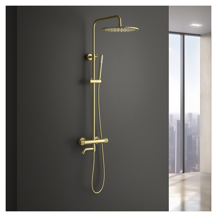 Душевая система TIMO Saona SX-2380/17 предназначена для подачи горячей и холодной воды в ванных помещениях. Модель оснащена регулируемой по высоте штангой, изливом для наполнения ванны, круглым верхним тропическим душем и цилиндрической ручной лейкой. Термостатический картридж обеспечивает подачу воды заданной температуры, что исключает ожоги. Верхний душ и ручная лейка выполнены из высококачественной латуни, отличающейся прочностью, долговечностью и устойчивостью к перепадам температур, держатель ручного душа - из пластика. В комплект поставки входят смеситель, штанга, держатель ручного душа, ручная лейка, тропический душ, шланг, эксцентриковые соединители, отражатели и настенный крепеж. Дополнительные характеристики:
