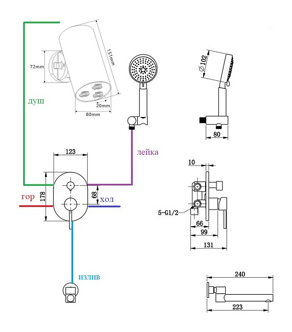 Душевой комплект Bronze de Lux Scandi 14582-501C используется в ванных комнатах. Модель оснащена круглыми верхним душем и ручной лейкой. Керамический картридж обеспечивает плавный ход рычага смесителя, контроль и точность при выборе напора и температуры воды. Изделие выполнено из высококачественной латуни, которая отличается прочностью, долговечностью и устойчивостью к перепадам температур, шланг - из металла. В комплект поставки входят смеситель, внутренняя часть, верхний душ, шланговое подключение с держателем лейки, душевая лейка, шланг и излив. Особенности: