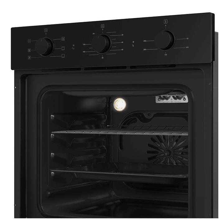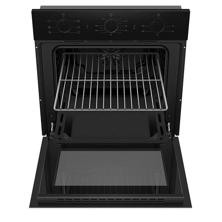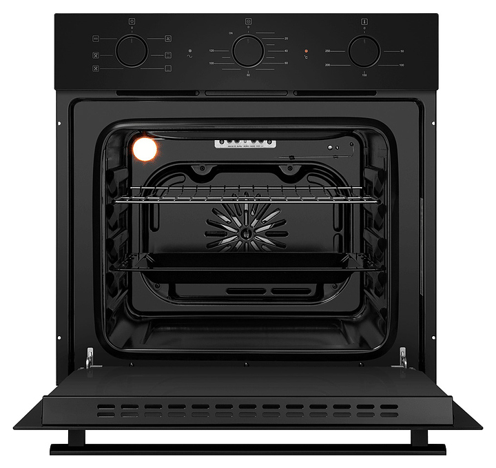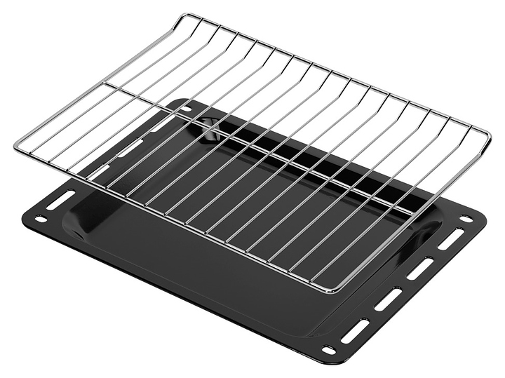 Встраивамый электрический духовой шкаф Maunfeld AEOF6060B2 предназначен для приготовления большого ассортимента блюд в домашних условиях. Модель оснащена камерой с расположенным в задней стенке вентилятором, верхним и нижним нагревательными элементами, верхним грилем, 5 уровнями интегрированных в боковые стенки направляющих для противней, откидной дверью со смотровым окном, уплощенной горизонтальной рукояткой, кабелем питания без вилки, расположенной в верхней части фронта панелью управления с 3 поворотными цилиндрическими переключателями. Корпус выполнен из высококачественной стали с покрытием фронта черного цвета и полным остеклением фронтальных панелей без винтового крепежа прозрачным закаленным стеклом, решетка для гриля – из стали с хромированной поверхностью, противень – из стали с эмалированным покрытием, фурнитура – из металла с черной матовой поверхностью. Комплектация:
