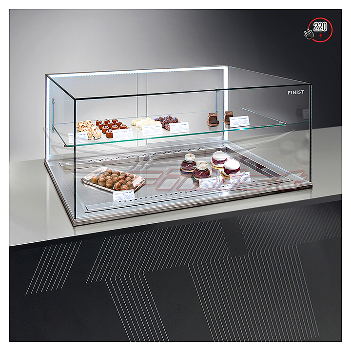 Встраиваемая кондитерская витрина Finist Glassier G812-9/65/5 предназначена для экспозиции и кратковременного хранения шоколадных изделий, конфет, пралине или других кондитерских изделий на предприятиях общественного питания и торговли. Модель оснащена одной стеклянной полкой, светодиодной подсветкой и регулятором скорости вращения вентиляторов. Каркас выполнен из высококачественной нержавеющей стали, экспозиционные панели – из прочного стекла. Особенности: