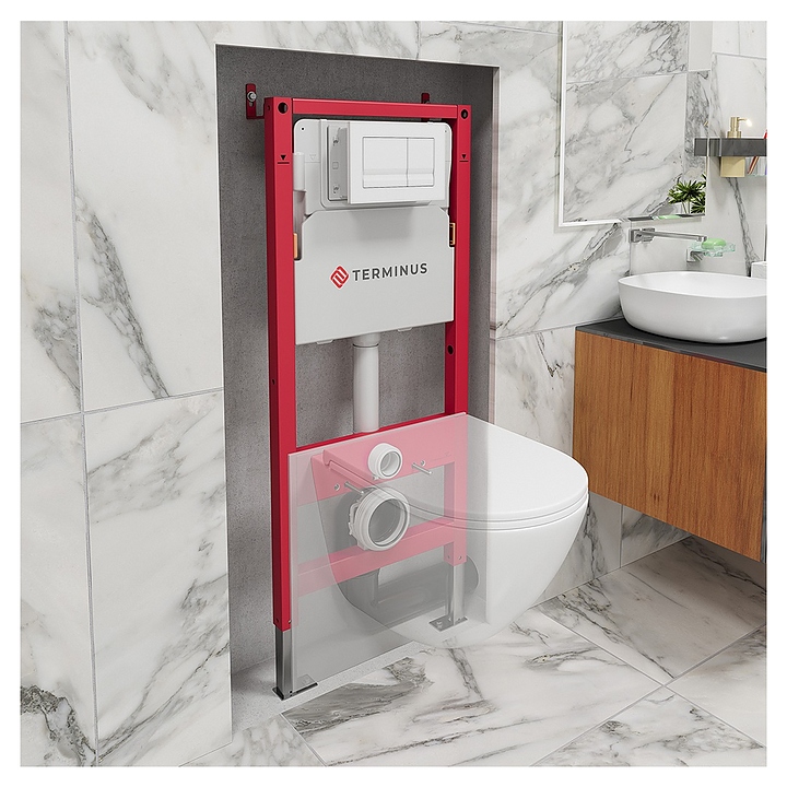 Система инсталляции с бачком Terminus 31i50х112R предназначена для установки подвесных унитазов. Модель оснащена вертикальными ребрами жесткости в конструкции рамы для дополнительной опоры в месте давления керамики на стену. Рама выполнена из цельного стального профиля толщиной 2 мм, которая отличается высокой прочностью, износостойкостью и долговечностью. Металлические детали покрыты порошковой эмалью для предотвращения коррозии. Полная комплектация: рама с бачком и арматурой, шумоизоляция, комплект крепежа, клавиша смыва. Особенности: