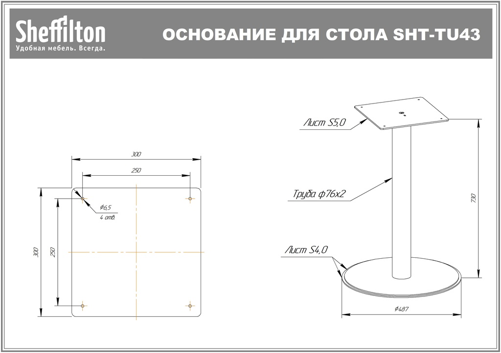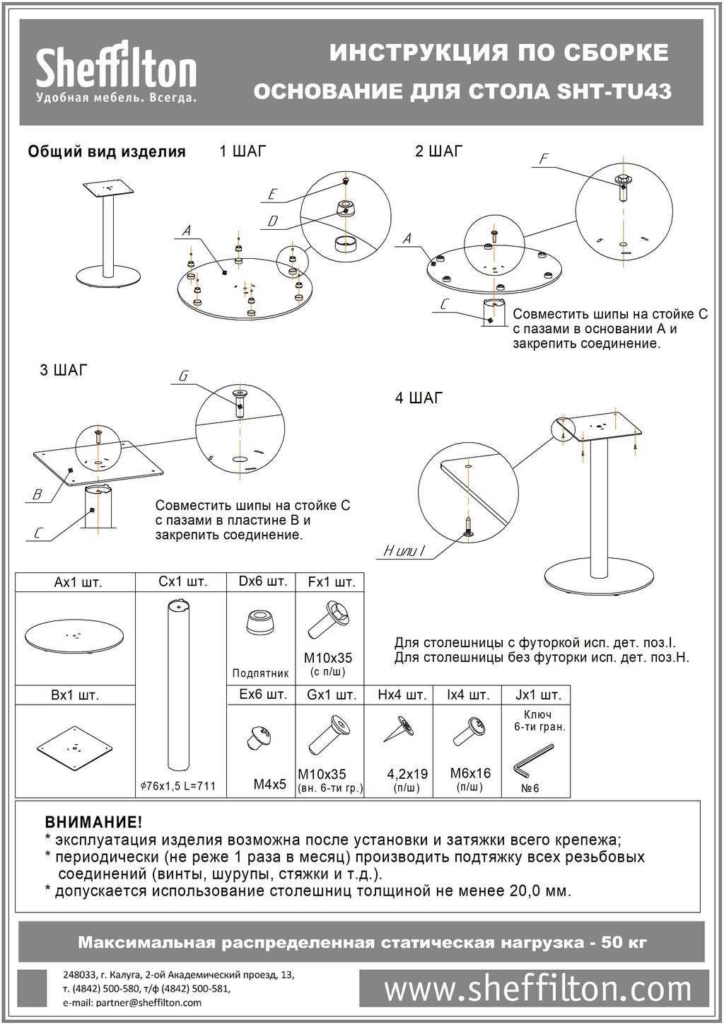 Подстолье Sheffilton SHT-TU43 используется в качестве опоры для столешницы обеденного столика в кафе, ресторанах и на других предприятиях общественного питания и торговли. Модель имеет устойчивую конструкцию из опорной плоскости квадратной формы, опорной стойки круглого сечения и круглого основания на 6 ножках. Компоненты выполнены из металла с покрытием порошковой краской оттенка черный муар, нижняя часть стойки с золотистой поверхностью, упаковка – из картона. Цена указана за 1 шт. Особенности: