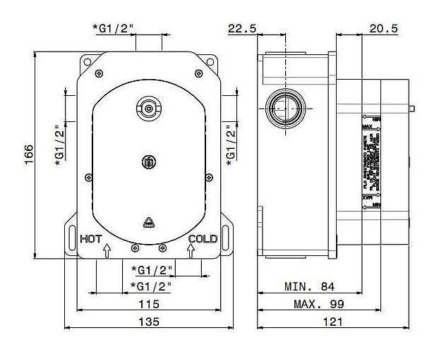 Универсальная скрытая часть Kerama Marazzi Ole 31020KM.00.000 предназначена для установки с термостатическим смесителем для душа на 3 потока. Характеристики: