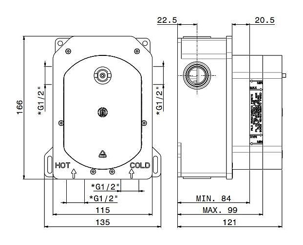 Универсальная скрытая часть Kerama Marazzi Ole 31061KM.00.000 предназначена для установки с термостатическим смесителем для душа на 2 потока. Характеристики:
