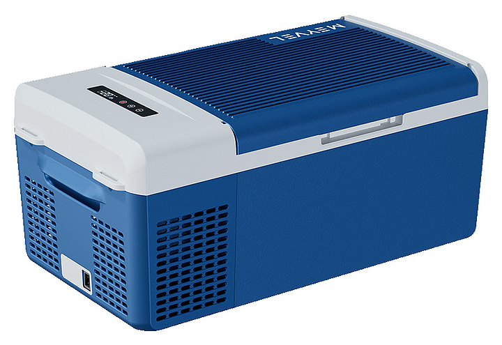 Переносной автохолодильник MEYVEL AF-M15 предназначен для охлаждения и глубокой заморозки, хранения и транспортировки продуктов питания и напитков в легковых и грузовых автомобилях, автодомах, специальной технике, лодках, катерах, яхтах, других видах транспорта и в быту. Модель оснащена компрессором, камерой, перенавешиваемой дверцей с защелками и ручками для переноски. Внешняя облицовка корпуса выполнена из прочного пластика, теплоизоляция – пенополиуретан высокой плотности. Особенности: