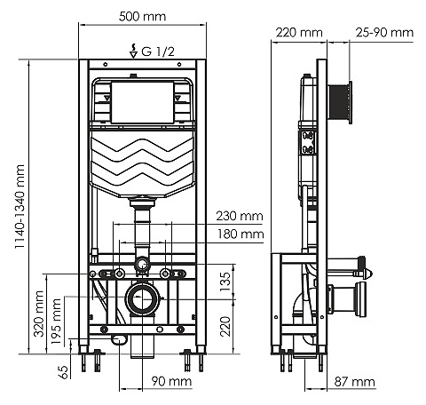 Система инсталляции Wasserkraft Dill 61TLT.010.ME.PG03 предназначена для установки подвесных унитазов. Внешняя рама выполнена из алюминия. Комплектация: