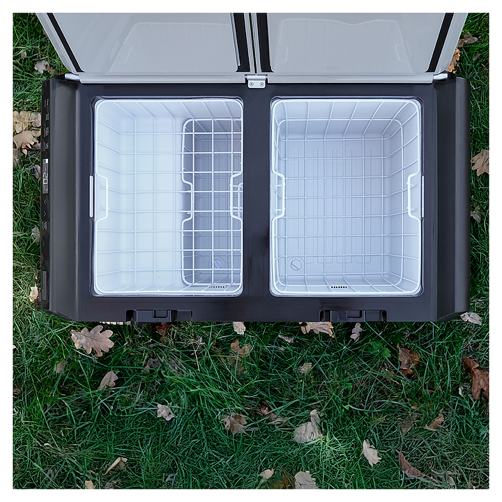 Переносной автохолодильник MEYVEL AF-PRO75 предназначен для охлаждения и глубокой заморозки, хранения и транспортировки продуктов питания и напитков в легковых и грузовых автомобилях, автодомах, в путешествиях, походах, на пикниках или во время кемпинга. Модель оснащена компрессором, 2 камерами, сенсорным управлением, замком на дверце, сетчатым карманом для хранения мелочей и ручками для переноски. Теплоизоляция выполнена из пенополиуретановой пены высокой плотности. В комплект поставки входит корзина. Транспортировочный набор и сетевой адаптер в комплект поставки не входят и приобретаются отдельно. Особенности: