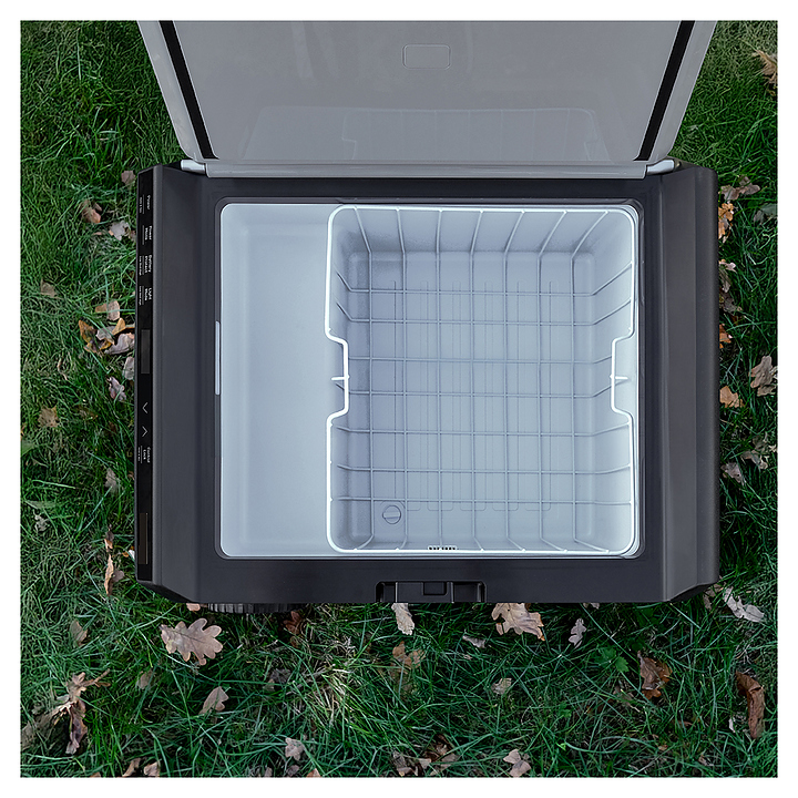Переносной автохолодильник MEYVEL AF-PRO54 предназначен для охлаждения и глубокой заморозки, хранения и транспортировки продуктов питания и напитков в легковых и грузовых автомобилях, автодомах, в путешествиях, походах, на пикниках или во время кемпинга. Модель оснащена компрессором, 1 камерой, сенсорным управлением, замком на дверце, сетчатым карманом для хранения мелочей и ручками для переноски. Теплоизоляция выполнена из пенополиуретановой пены высокой плотности. В комплект поставки входит корзина. Транспортировочный набор и сетевой адаптер в комплект поставки не входят и приобретаются отдельно. Особенности: