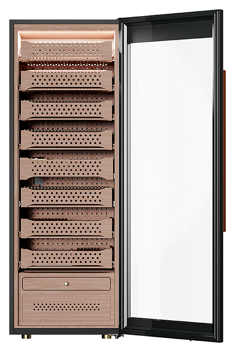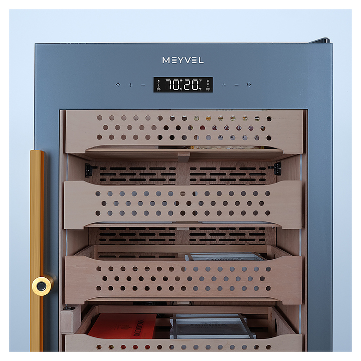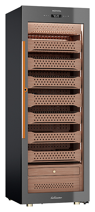 Шкаф MEYVEL MC-272BK (PRO) предназначен для хранения и созревания табачных изделий. Встроенный гигрометр и внутренняя подсветка упрощают мониторинг и обзор содержимого. Модель оснащена 1 температурной зоной, сенсорной панелью управления, дверью с магнитным уплотнителем для плотного закрывания и регулируемыми ножками. Дверца выполнена из двойного стекла с УФ-фильтром, ручка - из стали, внутренняя отделка - из высококачественного испанского кедра, который поддерживает оптимальный уровень влажности внутри камеры, что позволяет сохранять сигары в превосходном состоянии на протяжении длительного времени. Особенности: