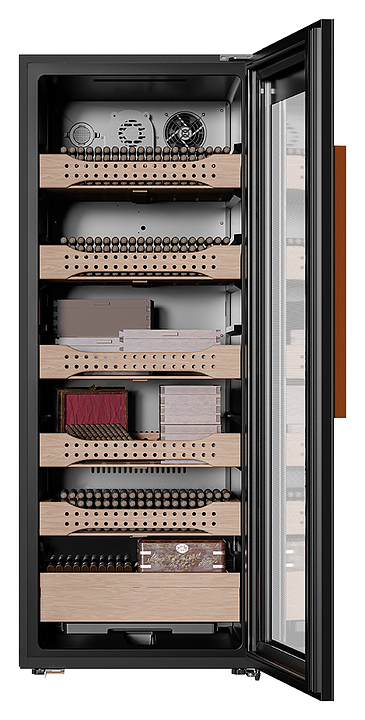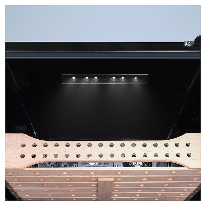 Шкаф MEYVEL MC-200BK (PRO) предназначен для хранения табачных изделий. Встроенный гигрометр и внутренняя подсветка упрощают мониторинг и обзор содержимого. Модель оснащена 1 температурной зоной, сенсорной панелью управления, дверью с магнитным уплотнителем для плотного закрывания и регулируемыми ножками. Дверца выполнена из двойного стекла с УФ-фильтром, ручка - из стали, внутренняя отделка - из высококачественного испанского кедра, который поддерживает оптимальный уровень влажности внутри камеры, что позволяет сохранять сигары в превосходном состоянии на протяжении длительного времени. Особенности: