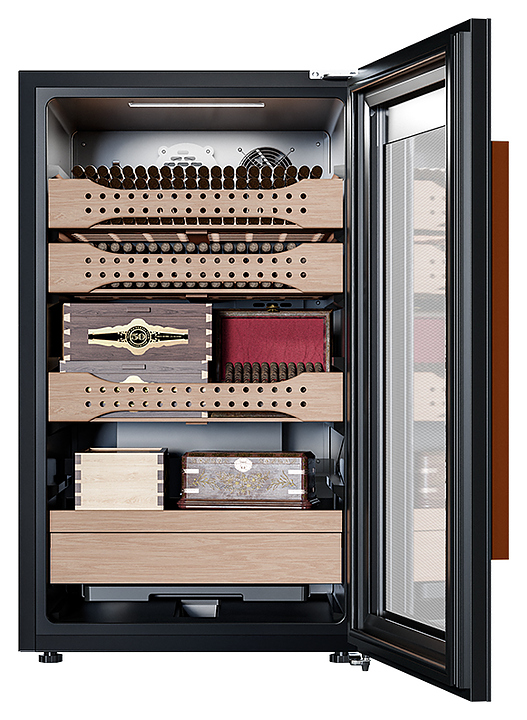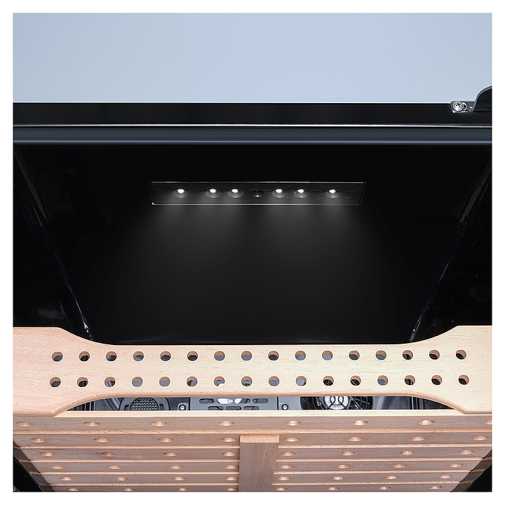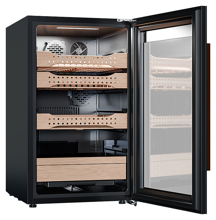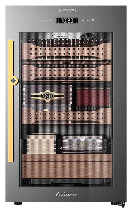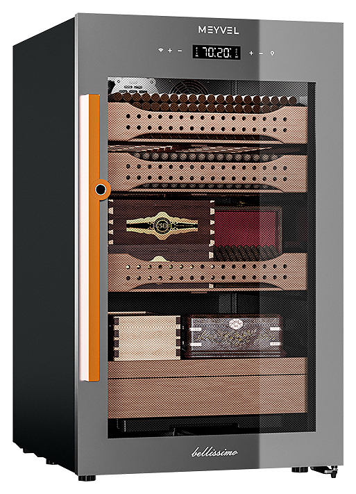 Шкаф MEYVEL MC-120BK (PRO) предназначен для хранения табачных изделий. Встроенный гигрометр и внутренняя подсветка упрощают мониторинг и обзор содержимого. Модель оснащена 1 температурной зоной, сенсорной панелью управления, дверью с магнитным уплотнителем для плотного закрывания и регулируемыми ножками. Дверца выполнена из двойного стекла с УФ-фильтром, ручка - из стали, внутренняя отделка - из высококачественного испанского кедра, который поддерживает оптимальный уровень влажности внутри камеры, что позволяет сохранять сигары в превосходном состоянии на протяжении длительного времени. Особенности:
