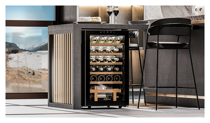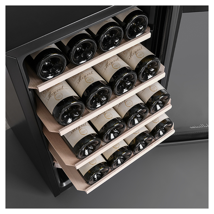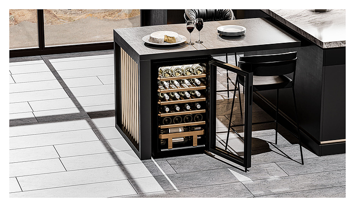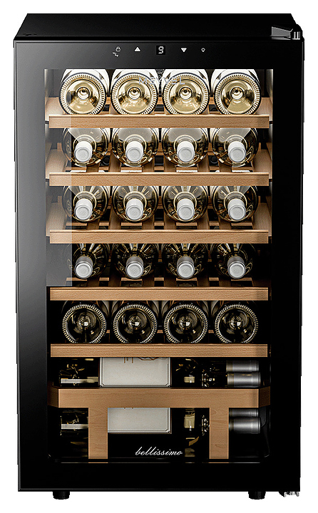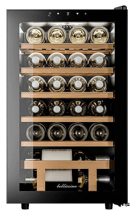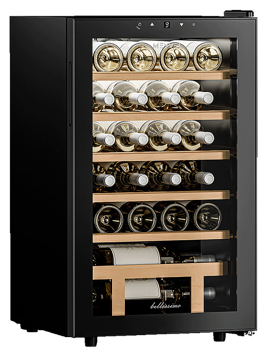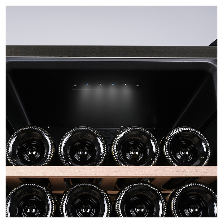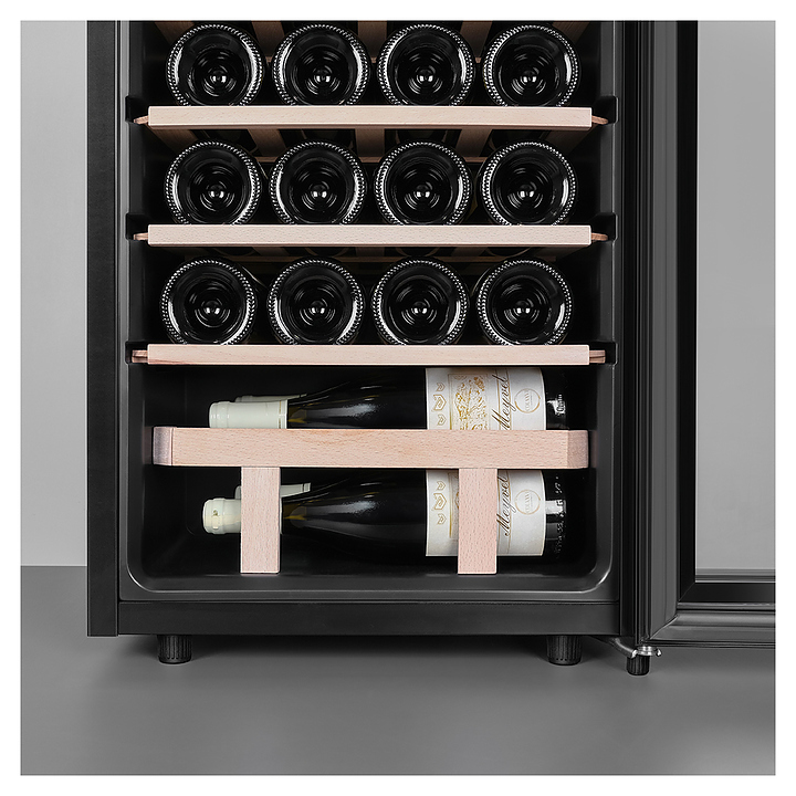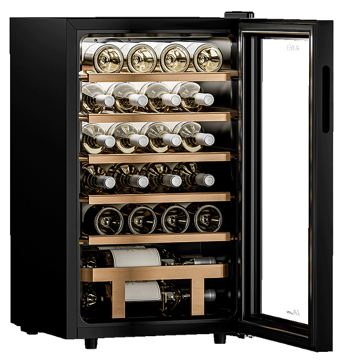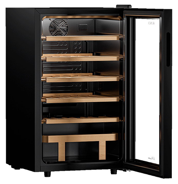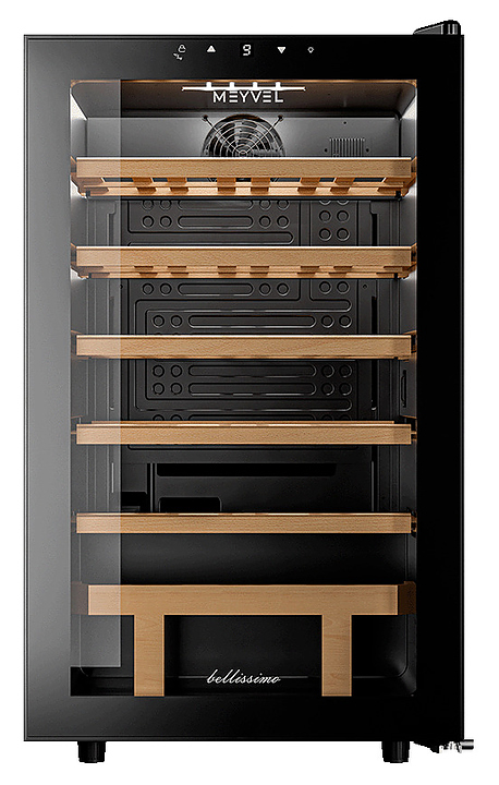 Винный шкаф MEYVEL MV24-KBF1 предназначен для демонстрации, хранения и создания оптимальных условий для сохранения всех вкусовых свойств вина в бутылках на предприятиях общественного питания, торговли, в барах, ресторанах, специализированных магазинах, частных домах или квартирах. Модель оснащена сенсорной панелью управления, демонстрационным освещением, эргономичной утопленной ручкой и регулируемыми ножками. Рамка двери выполнена из пластика, дверь - из двойного стекла с УФ-защитой, полки - из бука. Особенности: