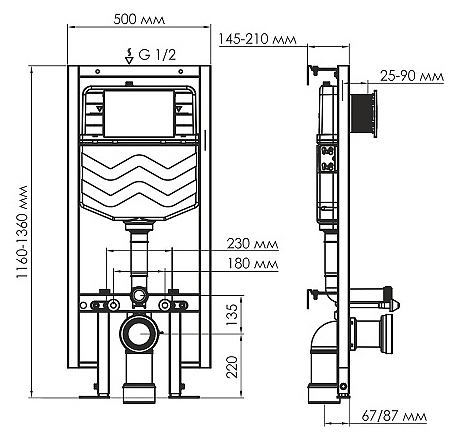 Система инсталляции Wasserkraft Dill 61TLT.010.ME.MG04 предназначена для установки подвесных унитазов. Внешняя рама выполнена из алюминия. Комплектация: