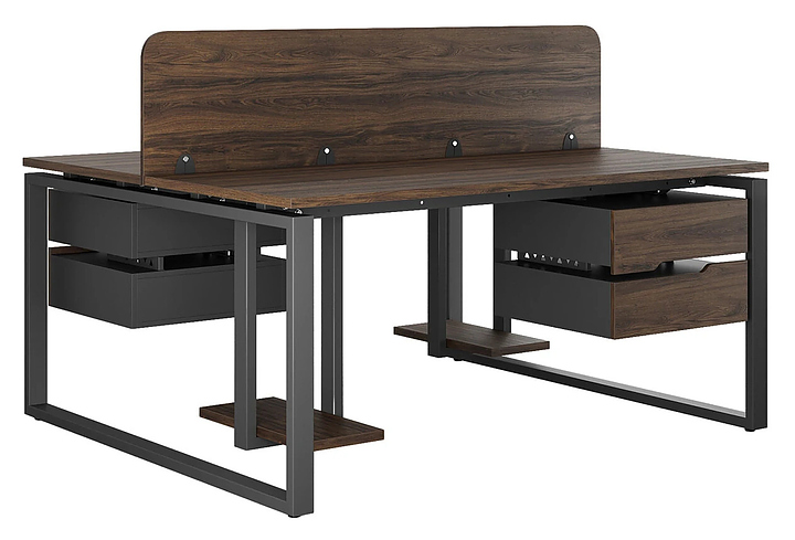Офисный стол Кобор O1/2-180/120 black/charlston используется в офисных помещениях и кабинетах руководителей. Модель оснащена O-образными опорами. Каркас и опоры выполнены из металла, выкрашенного в цвет черный муар (RAL9005), столешница – из ламинированной древесно-стружечной плиты (ЛДСП) цвета дуб чарльстон (H3154 ST36). Дополнительные характеристики:
