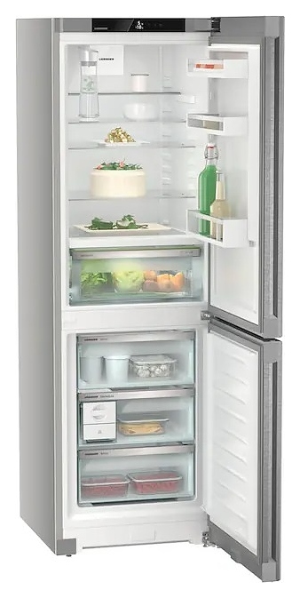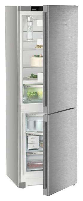 Холодильник Liebherr CBNsdc 522i серии Plus предназначен для охлаждения, замораживания, кратковременного и длительного хранения пищевых продуктов и напитков в гостиничных комплексах, офисах, а также домашних условиях. Модель оснащена холодильной камерой сверху и морозильной камерой снизу, правосторонними перенавешиваемыми распашными дверьми, кабелем питания с евровилкой, расположенными за дверью холодильной камеры в верхней части фронта сенсорной панелью управления и монохромным жидкокристаллическим дисплеем с белой подсветкой индикации. Фасад дверей выполнен из нержавеющей стали с горизонтальной шлифовкой и шелковистой текстурой поверхности SmartSteel серебристого оттенка, боковины – из стали с покрытием в тон фасада, внутренняя облицовка камер – из белого пластика, плоские полки – из прозрачного закаленного стекла, ящики и навесные полки – из белого пластика с прозрачным фронтом, ящики и полки декорированы окантовками серебристого оттенка, сухая задняя панель – из пластика, упаковка – из гофрокартона, полимерной пленки и полистирола.