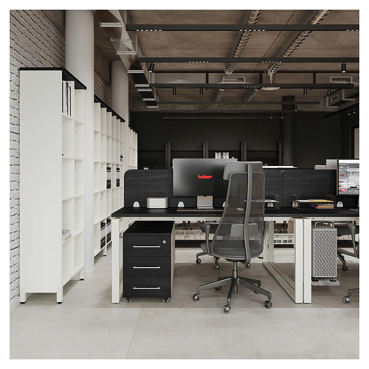 Офисный стол Кобор O1/2-140/160 white/glazed на 2 рабочих места используется в офисных помещениях и кабинетах руководителей. Модель оснащена O-образными опорами. Каркас и опоры выполнены из металла, выкрашенного в цвет белый муар (RAL9016), столешница – из ламинированной древесно-стружечной плиты (ЛДСП) цвета черный дуб (H3178 ST37). Дополнительные характеристики: