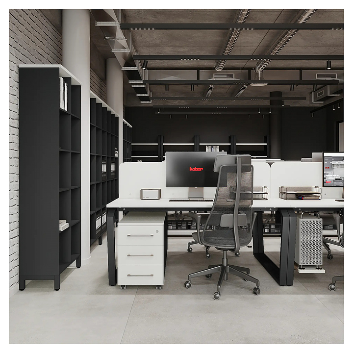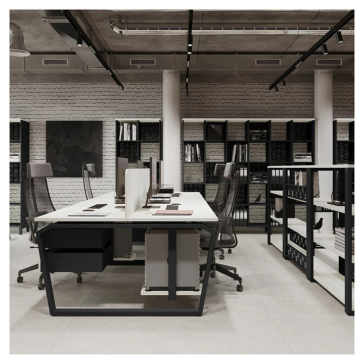 Офисный стол Кобор TB/2-140/140 black/premium на 2 рабочих места используется в офисных помещениях и кабинетах руководителей. Модель оснащена опорами в форме обратной трапеции со скошенными верхними углами. Каркас и опоры выполнены из металла, выкрашенного в цвет черный муар (RAL9005), столешница – из ламинированной древесно-стружечной плиты (ЛДСП) цвета белый премиум (W1000 ST9). Дополнительные характеристики:
