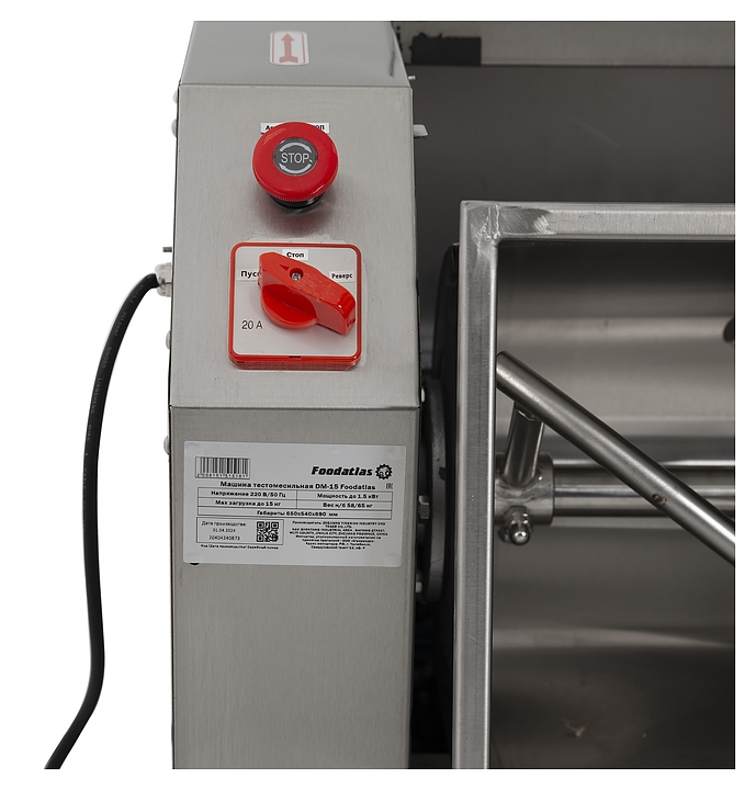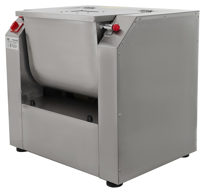 Тестомесильная машина Foodatlas DM-25 предназначена для замешивания крутого теста для приготовления пельменей, вареников, мантов и чебуреков в пекарнях, кулинарных студиях, столовых и на других предприятиях общественного питания и торговли малой и средней мощности. Модель оснащена горизонтально расположенным месильным органом с 2 S-образными лопастями и электромеханической панелью управления. Корпус выполнен из стали с антикоррозийным покрытием, дежа и месильный орган – из высококачественной нержавеющей стали, прочие соприкасающиеся с продуктом компоненты – из безопасных для пищевой продукции материалов, смотровое окно – из оргстекла, упаковка – фанерный ящик. Особенности: