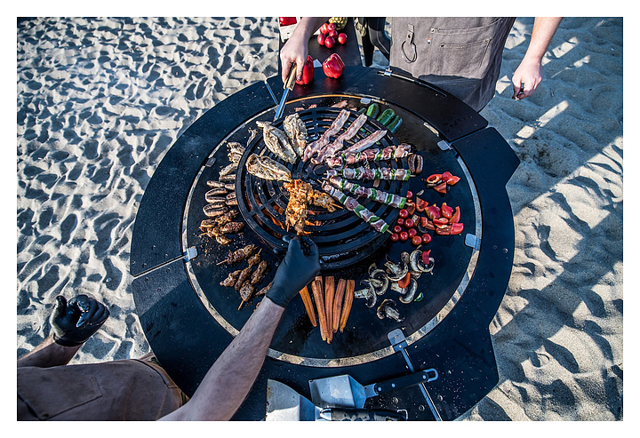 Уличный гриль COEO TRIO 82 серии Brasero используется на уличных площадках баров, кафе, других небольших предприятий общественного питания, кемпингов, частных домов и дач для жарки овощей, рыбы, приготовления шашлыка, а также различных тушеных блюд в чугунной посуде. Модель оснащена трапецевидной подставкой, конически расширенным кверху очагом и съемной круглой планчой с расположенной под небольшим наклоном к широкому отверстию в центре рабочей поверхностью. Подставка и очаг выполнены из высококачественной устойчивой к атмосферным воздействиям горячеоцинкованной стали с матовым покрытием порошковой краской черного цвета, планча – из безопасной для пищевой продукции толстостенной стали с серебристой поверхностью. Комплектация: