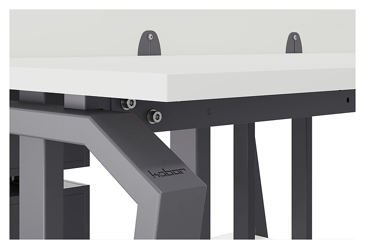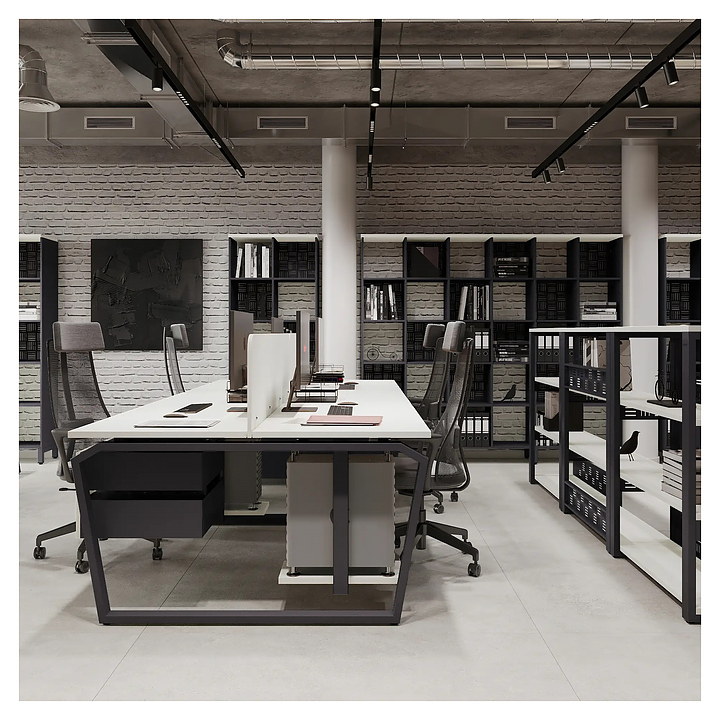 Офисный стол Кобор TB/2-160/120 graphite/premium на 2 рабочих места используется в офисных помещениях и кабинетах руководителей. Модель оснащена опорами в форме обратной трапеции со скошенными верхними углами. Каркас и опоры выполнены из металла, выкрашенного в цвет графит муар (RAL7024), столешница – из ламинированной древесно-стружечной плиты (ЛДСП) цвета белый премиум (W1000 ST9). Дополнительные характеристики: