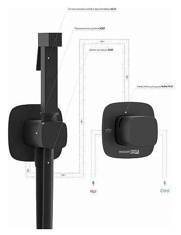 Встраиваемый комплект для биде со шлангом Wasserkraft Nuthe 9100 A9151.327.241.212 черный