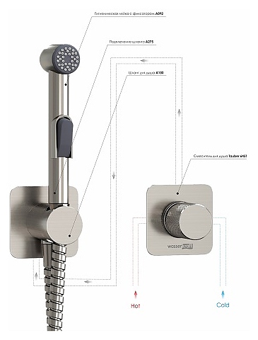 Встраиваемый комплект для биде со шлангом Wasserkraft Tauber 6400 A6451.275.100.092 никель