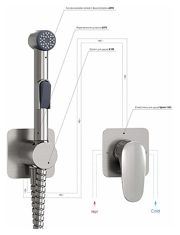 Встраиваемый комплект для биде со шлангом Wasserkraft Spree 1400 A1451.275.100.092 никель