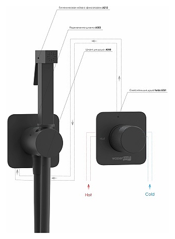 Встраиваемый комплект для биде со шлангом Wasserkraft Fulda 5200 A5251.302.241.212 черный
