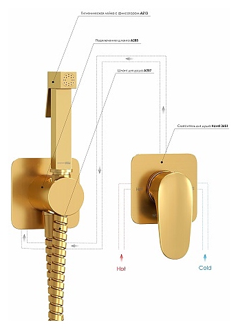 Встраиваемый комплект для биде со шлангом Wasserkraft Havel 3600 A3651.285.237.213 золото матовое
