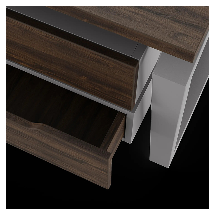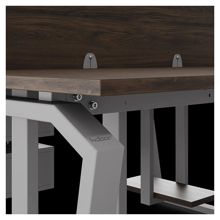 Офисный стол Кобор TB/2-140/140 aluminum/charlston на 2 рабочих места используется в офисных помещениях и кабинетах руководителей. Модель оснащена опорами в форме обратной трапеции со скошенными верхними углами. Каркас и опоры выполнены из металла, выкрашенного в цвет алюминиевый металлик (RAL9006), столешница – из ламинированной древесно-стружечной плиты (ЛДСП) цвета дуб чарльстон (H3154 ST36). Дополнительные характеристики: