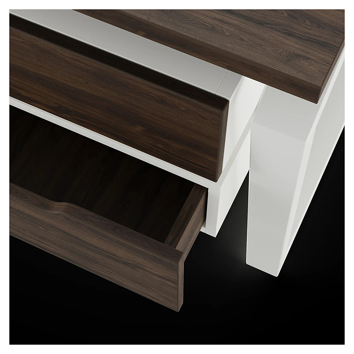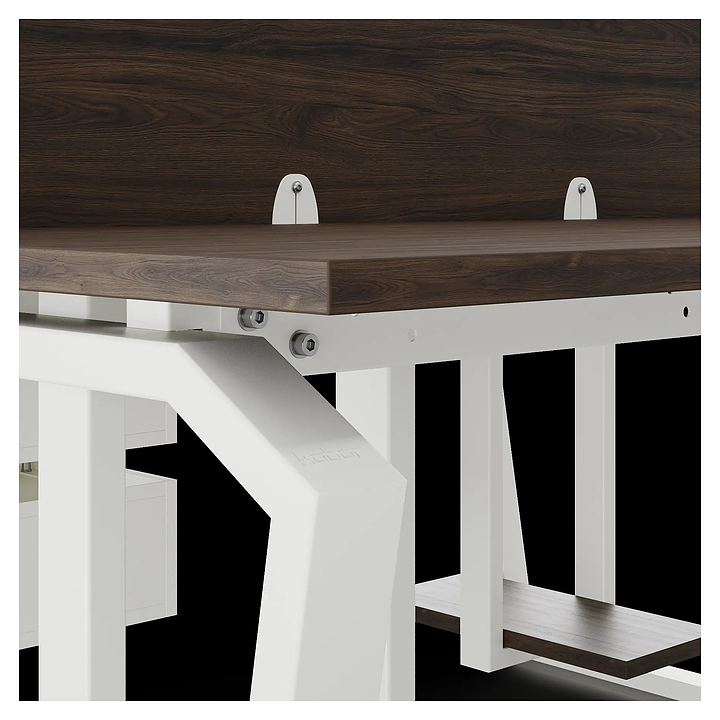 Офисный стол Кобор TB/2-140/120 white/charlston на 2 рабочих места используется в офисных помещениях и кабинетах руководителей. Модель оснащена опорами в форме обратной трапеции со скошенными верхними углами. Каркас и опоры выполнены из металла, выкрашенного в цвет белый муар (RAL9016), столешница – из ламинированной древесно-стружечной плиты (ЛДСП) цвета дуб чарльстон (H3154 ST36). Дополнительные характеристики: