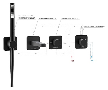 Встраиваемый комплект для ванны Wasserkraft Fulda 5200 A5251.299.301.302.242.217 черный