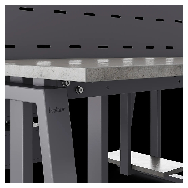 Офисный стол Кобор TR/2-140/140 graphite/chicago на 2 рабочих места используется в офисных помещениях и кабинетах руководителей. Модель оснащена опорами в форме трапеции. Каркас и опоры выполнены из металла, выкрашенного в цвет графит муар (RAL7024), столешница – из ламинированной древесно-стружечной плиты (ЛДСП) цвета бетон чикаго (F186 ST9). Дополнительные характеристики: