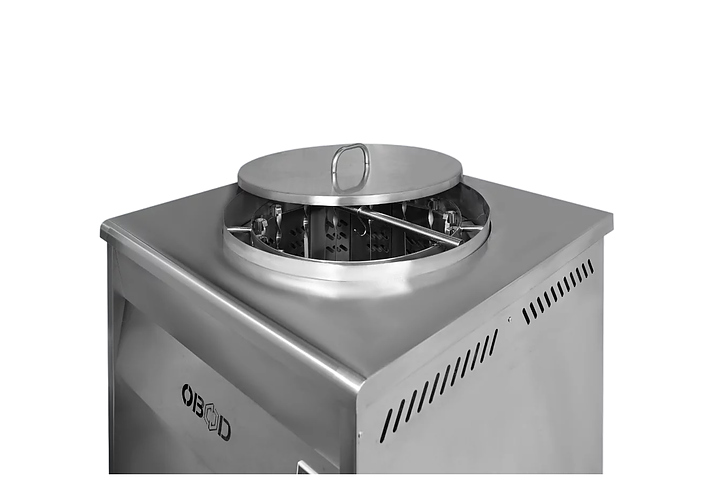 Электрическая шашлычница OBOD ЭТ-001 предназначена для приготовления шашлыка и других блюд из мяса и птицы на предприятиях общественного питания и торговли. Модель оснащена цилиндрической камерой с перфорированными стенкками, съемной крышкой с дугообразной ручкой и электромеханической панелью управления. Корпус выполнен из пищевой нержавеющей стали. Особенности: